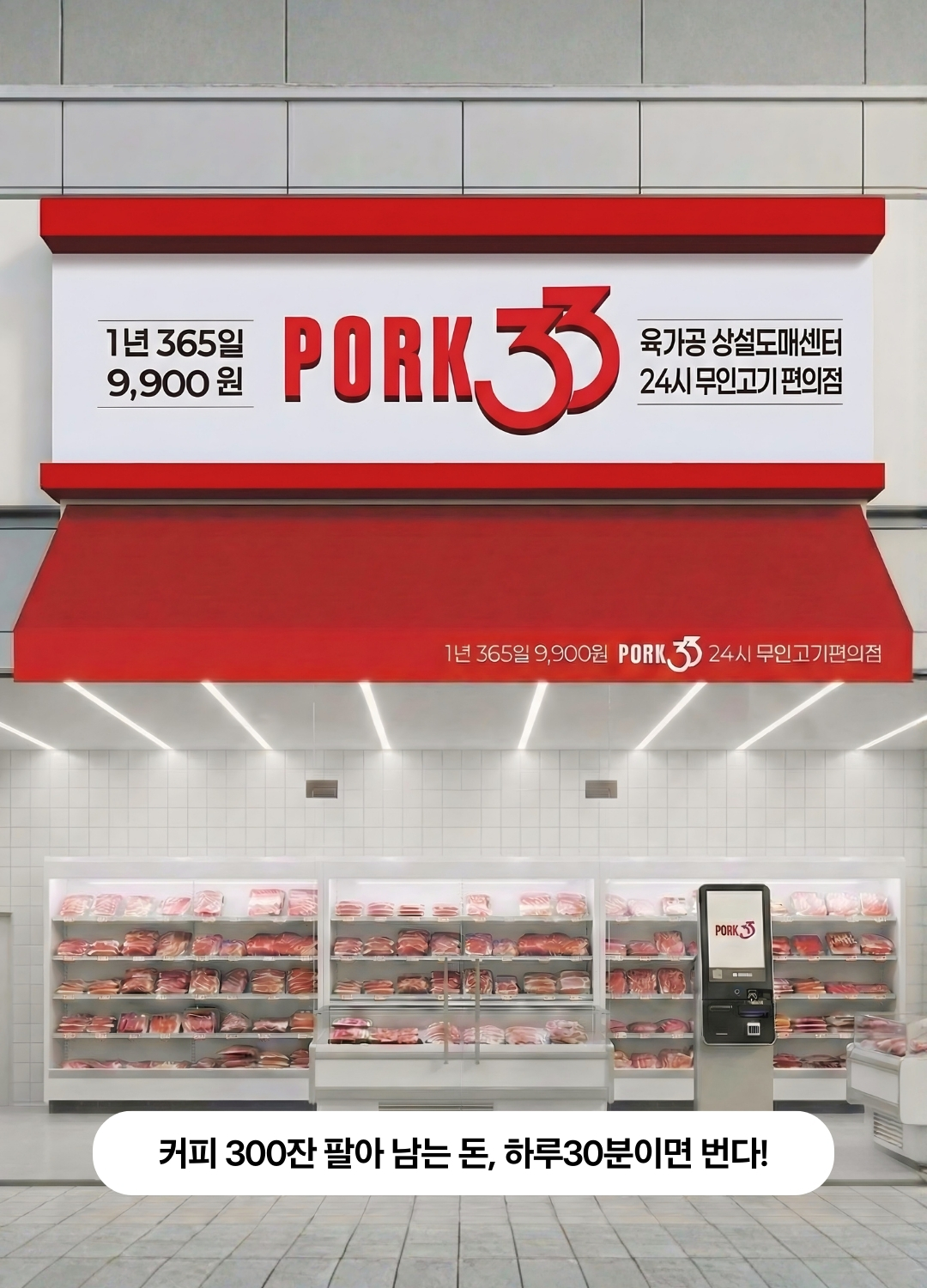 포크33 고기편의점 : 소자본으로 창업 가능한 신개념 정육 프랜차이즈! 한돈, 우리 한우를 가장 저렴하게, 가장 신선하게